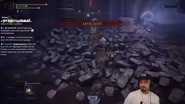 01:26:56Es wird eine neue Route für Nockron in Erwägung gezogen, wobei betont wird, dass es sich nicht um Main Castle handelt. Diskussionen über die geistige Verfassung der Spieler und die Frage, was im Spiel gebannt werden soll, folgen. Einer der Spieler erklärt, dass er weniger Schaden macht, wenn er nicht volle HP hat. Die Spieler nehmen Wilder-Waffen an und kämpfen gegen Gegner, wobei einer der Spieler stirbt und ein Item droppt. Es wird festgestellt, dass Rot-Build-Up auch ohne das Halten der entsprechenden Waffe aktiv ist. Die Spieler suchen nach dem richtigen Weg und warten aufeinander, wobei einer der Spieler gegen eine Mauer schlägt. Sie springen und navigieren durch schwieriges Gelände, wobei die Kommunikation und das Verständnis füreinander auf die Probe gestellt werden. Ein Spieler springt in den Tod und findet sich in einer unbekannten Umgebung wieder, was zu Frustration und der Notwendigkeit führt, sich wiederzufinden. Die Spieler kämpfen sich zum Boss durch und diskutieren über die Duplizierung von Gegenständen. Einer der Spieler hat bereits zwei Projector Damage Drop-Offs.