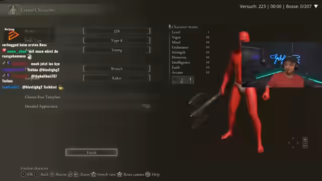 01:53:51Nach einer Pause wird der Stream fortgesetzt. Der Streamer entscheidet sich für einen neuen Versuch und wählt den Astrologer als Startklasse, da er von der dort erhaltenen Waffe überzeugt ist. Es werden verschiedene Items wie der 'Dragon Scale Belt' und Heilungstränke besprochen, die den Kampf erleichtern könnten. Die Motivation scheint etwas zurückgekehrt zu sein, bleibt aber von der Frustration der vorangegangenen Kämpfe geprägt. Die Taktik gegen den nächsten Boss wird geplant.