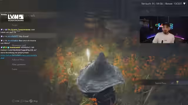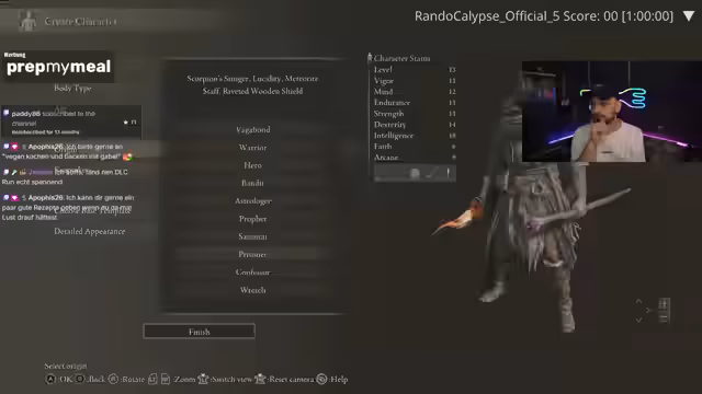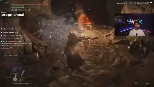 00:20:10Vor dem eigentlichen Start des Spiels nimmt der Streamer wichtige Anpassungen an seinen Stream-Panels vor, insbesondere für die 'Prep My Meal'-Partnerschaft, da die Black Week beendet ist. Er muss die Panels und Texte aktualisieren, um keine Probleme zu bekommen. Nach diesen technischen Vorbereitungen beginnt der eigentliche Run in Elden Ring. Er startet in Leonir und muss darauf achten, keine Items freiwillig einzusammeln, was eine der Hauptregeln der Challenge ist. Die erste Waffe wird direkt auf Plus 24 aufgewertet, was einen schnellen Start ermöglicht.