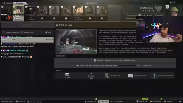 03:24:02Nachdem er alle Gegenstände abgelegt hat, muss der Streamer feststellen, dass er kein Geld hat, um seine Waffen zu reparieren. Er versucht, mit den Händlern zu interagieren und erfährt, dass er 250.000 Rubel bezahlen muss, um Zugang zu bestimmten Informationen und Aufgaben zu erhalten. Dies ist eine neue Einstiegshürde, die es früher nicht gab. Er nimmt eine erste Aufgabe von der Therapeutin an, bei der er medizinische Gegenstände abgeben soll, und lehnt es ab, das gefundene Ledex dafür zu verwenden. Er bemerkt, dass die Charaktere anders aussehen als früher und die Grafik insgesamt verbessert wurde. Eine weitere Aufgabe führt ihn zu Ragman, der ihn bittet, auf Interchange zu überleben und zu extrahieren, was der Streamer als seine unbeliebteste Karte empfindet.