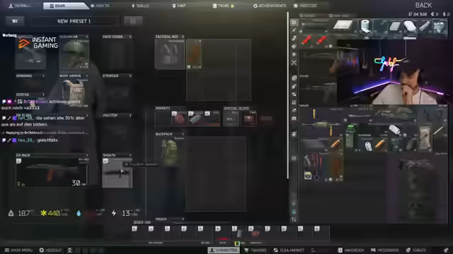 04:04:31Der Streamer entdeckt die Möglichkeit, im Hideout Dinge zu bauen, darunter Vans, und freut sich über diese neue Funktion. Er stellt fest, dass er für den Bau des Mad Bays nur noch Zahnpasta benötigt, um Reparaturkits freizuschalten. Er erhält weitere Missionsgegenstände und muss sich darauf konzentrieren, 250.000 Rubel zu verdienen, um die Story-Progression fortzusetzen. Er entscheidet sich, erneut mit einer Pistole auf Interchange zu gehen, da er die Karte nicht mag und kein gutes Gefühl dabei hat, wertvolle Ausrüstung zu riskieren. Die anhaltenden Matchmaking-Probleme und die lange Wartezeit frustrieren ihn, da er sich an Zeiten erinnert, in denen man sofort in Runden kam. Er überlegt, ob er auch PvE spielen sollte, um die Karten besser kennenzulernen.