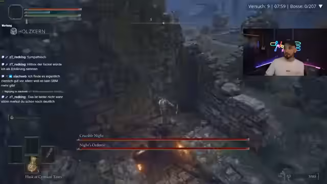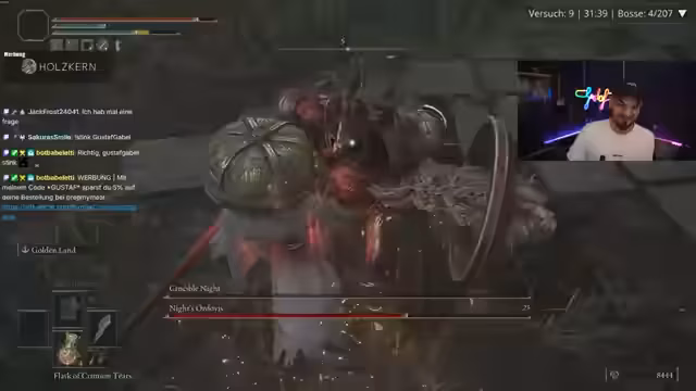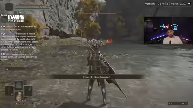 01:46:56Nach dem Kampf gegen Jory wird ein weiteres Skado-Level erreicht. Es folgen weitere Kämpfe, bei denen die Zweihänder-Waffe als fantastisch empfunden wird. Die Konfrontation mit Nile wird vorerst vermieden, da der Streamer sich nicht wohlfühlt, gegen hochskalierte Bosse zu kämpfen, insbesondere mit der aktuellen Ausrüstung. Die Strategie, Bosse mit geringerer Skalierung zuerst zu besiegen, wird fortgesetzt. Der Kampf gegen den Ghostflamedragon und Edred wird geplant, wobei es zu Schwierigkeiten mit der Ausdauer und R1-Inputs kommt. Ein unerwarteter Tod gegen einen Bären, verursacht durch einen Talisman, führt zu Frustration und der Erkenntnis, dass der Seed schwierig ist und jeder Run mit einem Tod endet.