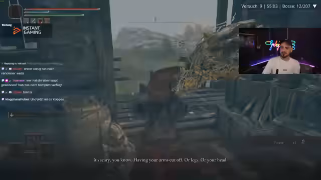 08:04:13Der Spieler hat schlechte Erfahrungen mit Bären gemacht und möchte in Ruhe gelassen werden. Er äußert Frustration über einen dummen Tod und versucht, eine Liste für die Challenge zu zweckentfremden. 'Giant Hunt' wird als 'fucking crazy gut' empfunden. Es wird über die 'French' Challenge gesprochen und die besondere Spielweise von 'Gene', die sich von den meisten anderen unterscheidet. Der Spieler ist beeindruckt von Genes methodischer und vorsichtiger Spielweise. Er nimmt immer alle vier Items mit, nicht nur manchmal. Der Spieler gibt zu, nicht geduldig genug für Genes Spielstil zu sein und kann nicht durchgehend passiv oder vorsichtig spielen. Er weiß, dass dies ihn langfristig zurückhält, aber es ist kein Wettbewerb. Die Auflagen der R2-Attacke reichen nicht aus, was den Kampf anstrengend macht. Der Spieler hasst die langsamen Pfeile und Dolche, die zum Warten zwingen. Er wünscht sich eine neue Waffe und leidet 'Höllenqualen'. Es wird ein Schild gefunden, das das Leben erleichtern könnte. Es wird diskutiert, dass jeder Mensch unterschiedliche Spielstile und Motivationen hat. Der Spieler bevorzugt es, mit Spaß und seinem eigenen Stil erfolgreich zu sein, auch wenn er ungewöhnliche oder schlechtere Waffen als die Meta benutzt. Er findet Befriedigung darin, nicht die besten Sachen zu benutzen. Die Möglichkeit, wie 'Gino' zu spielen, wird diskutiert, wobei der Spieler dies für sich selbst als unmöglich erachtet, da er die Geduld nicht aufbringen könnte. Er hat großen Respekt vor 'Gino' und 'Kajuro', die solche Challenges freiwillig machen. Es wird vermutet, dass 'Gino' ins DLC gegangen ist, weil er musste, nicht weil er wollte, um frühere Todesfälle zu riskieren. Der 'Schild Goat' wird als deutlich bessere Waffe empfunden. Der Spieler hat früher viel 'Gino' geschaut, jetzt aber eher 'Little Eggie', 'Star Chris' und 'Domus-Videos'. Er findet keine guten Items und kämpft gegen starke Gegner. Der Schaden ist 'verstörend wenig', und er hofft auf bessere Aufrüstungen. Der Spieler hat acht Kills und 'struggelt'. Er kann einiges verkaufen, hat aber keine Lust, einen bereits gespielten Seed zu investieren. Er weiß, dass der DLC bei 'Horalu' sehr einfach war und 'Horalu' sterben musste. Der Spieler stirbt erneut, weil er sich nicht heilen konnte, obwohl er mehrmals gedrückt hat. Er vermutet eine Animation oder ein Controllerproblem. Der Stream wird beendet.