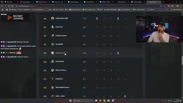 00:17:14Der Streamer erklärt, dass Seeds, die älter als sieben Tage sind, Strafpunkte beim Einschicken verursachen. Daher wird Seed 5 im aktuellen Stream gespielt, um dies zu umgehen. Er plant, den Run ohne große Vorbereitung zu starten und sich überraschen zu lassen, ob es sich um Limgrave oder Caleb Leon handelt. Es wird die Hoffnung geäußert, in die Top 32 der Rangliste zu gelangen. Weiterhin spekuliert er, dass Seed 6 aufgrund der hohen Punktzahlen der besten Spieler wahrscheinlich ein DLC-Seed und somit besonders schwer sein wird.