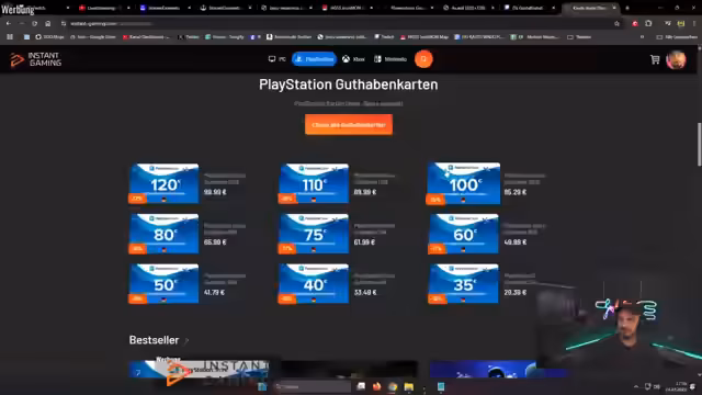 03:19:13Das Unboxing führt zur Werbung für aktuelle Partner. Der Streamer preist Instant Gaming als Plattform für günstige Spielekäufe an und erwähnt, dass über den Shop auch PlayStore-Guthaben zu reduzierten Preisen erworben werden kann. Daraufhin folgt eine Werbung für Prep My Meal, einen Anbieter von proteinreichen Mahlzeiten. Hier wird der Prozess einer Bestellung demonstriert, bei welcher eine Auswahl an verschiedenen Mahlzeiten getroffen wird.