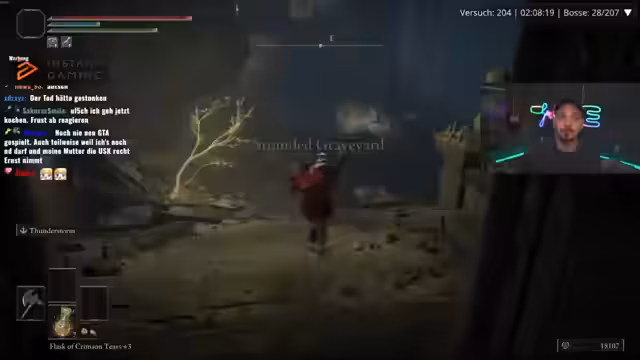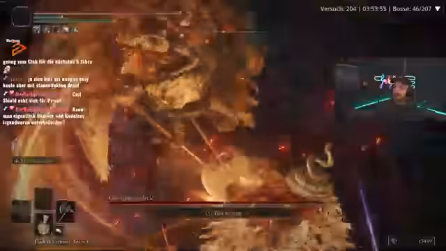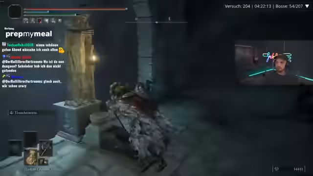 04:18:05Der Fokus verlagert sich auf das aktuelle Gameplay in einem Soulslike-Titel. Es werden wiederholte Kämpfe gegen verschiedene bosshafte NPCs beschrieben, wobei der Streamer über deren Schwierigkeiten, Taktiken und die eigenen Builds spricht. Er stellt fest, dass trotz vieler gesammelter Talismane der erlittene Schaden enttäuschend ist und viele gute Waffen nicht sinnvoll genutzt werden können. Der Ton ist frustriert, aber auch von der Herausforderung fasziniert.