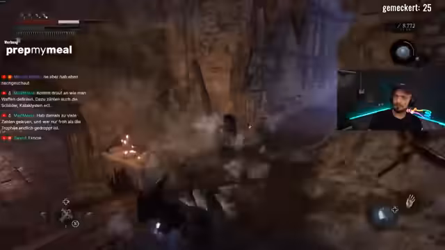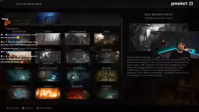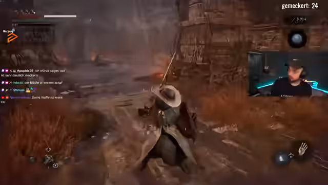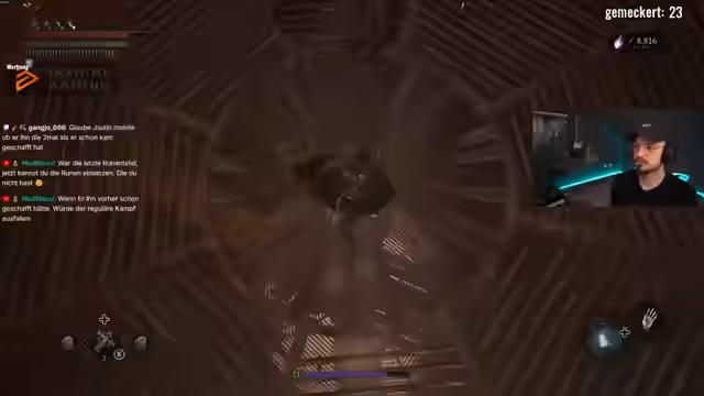 00:22:46Ein zentrales Problem im späteren Spielverlauf ist das Fehlen von Speicherpunkten. Der Streamer ist verärgert, da er nicht weiß, wo der letzte Ort zum Speichern ist, was den Fortschritt extrem schwierig macht. Dies führt zu mehreren Frustmomenten und Toden, bei denen wertvolle Seelen verloren gehen. Er muss sich mit dem Geduldigen und kryptischen Level-Design herumärgern, um den Weg zurück zu einem bekannten Punkt zu finden, was den Spielverlauf stark verlangsamt und die Motivation untergräbt.