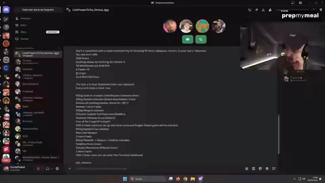 02:12:15Nach der detaillierten Erklärung des Formats startet die Vorbereitungszeit von drei Minuten. Die Spieler erhalten Zugang zu der Textdatei mit allen Key-Items und den genauen Placements. Die Streamer, Gustaf und Alex, schauen sich die verfügbaren Waffen und Graces an. Gustaf entscheidet sich für Krino und Night Sword, während Alex andere Pläne hat. Sie starten das Race, indem sie in das Roundtable geladen werden, um mit dem Sammeln der Graces zu beginnen.