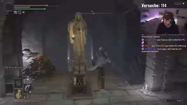 02:13:31Der Streamer befindet sich mitten in einem Speedrun, bei dem er versucht, alle Bosse in möglichst kurzer Zeit zu besiegen. Er erwähnt einen aktuellen Rekord eines Konkurrenten und zeigt sich motiviert, diesen zu übertreffen. Er kommuniziert mit dem Chat über den Fortschritt, überlegt strategisch, welchen Boss als Nächstes angreifen soll, und sammelt wichtige Items wie Remembrances, um seine Waffen zu verbessern und den Run effizienter zu gestalten.