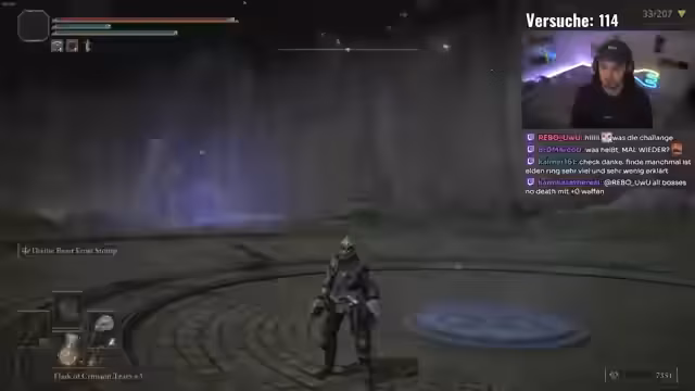 00:05:28Nach dem Begrüßung 'Kuckkuckkuck' richtet der Streamer den Fokus auf das Ziel: einen neuen persönlichen Bestwert zu erreichen. Die Herausforderung besteht darin, in einem Elden Ring Randomizer alle Bosse ohne den eigenen Tod und ohne eine einzige Waffe aufzuwerten zu besiegen. Der aktuelle Rekord liegt bei 85, und der Streamer ist fest entschlossen, diesen heute zu übertreffen. Die Stimmung ist motiviert und humorvoll, da er seine Twitch-Zuschauer begrüßt und auf die Einschränkungen für das YouTube-Publikum hinweist.