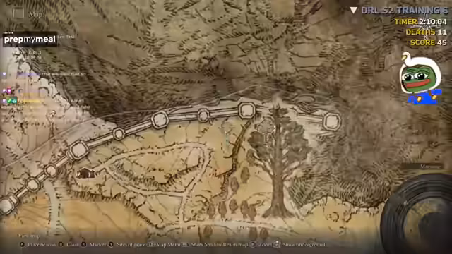 00:13:48Nach einem kurzen Gespräch beginnt der Streamer mit der Planung einer Trainingsroute für das Spiel. Ziel ist es, Bossen so schnell wie möglich zu besiegen, um die Uhr zu schlagen. Es werden verschiedene Laufwege und Grace-Sprungstellen analysiert, um Wege zu optimieren. Strategien für das schnelle Absolvieren von Bosskämpfen und das Sammeln von Ressourcen werden besprochen. Besonderes Augenmerk liegt auf der Frage, ob bestimmte Wege wie der Grafted Sion oder der Zugang zu Kali schneller sind als die Standardroute.