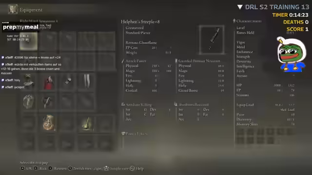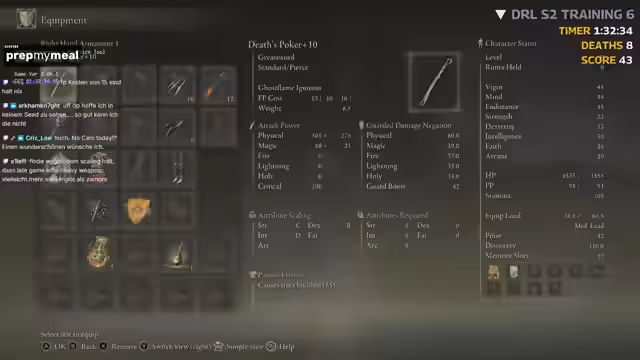 03:33:13Der Streamer wechselt zur Vorbereitung für einen echten Seed-Run. Er experimentiert mit verschiedenen Startpunkten und Bosskombinationen, um die optimale Route zu finden. Themen sind die Entscheidung, ob man Margit zu Beginn machen sollte, sowie die Nutzung von Noten oder speziellen Waffen wie dem Blade of Crawling. Gleichzeitig diskutiert er verschiedene Builds, darunter den Fire-Build und Allrounder-Waffen, und überlegt, ob man früh ins Leveln von Faith oder Stärke investieren sollte, um starke Waffen nutzen zu können.