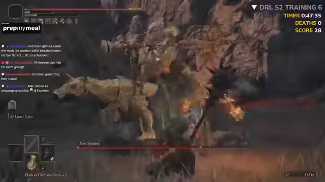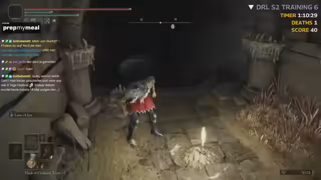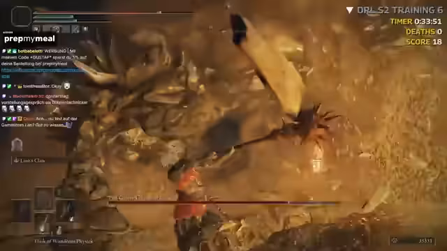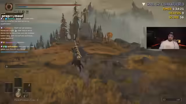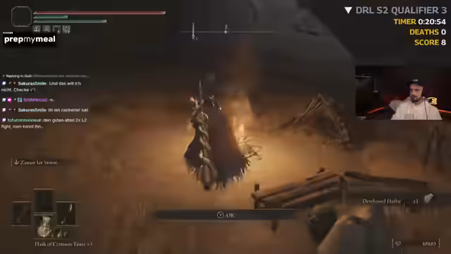 04:20:56Der Streamer beginnt mit dem echten, uneditierten Seed-Run. Er spielt ohne Cam und verlässt sich auf seine überlegte Route. Zu Beginn ist er sichtlich aufgeregt und macht kleine Fehler, wie einen Umweg, der ihm宝贵 Zeit kostet. Er findet bereits zu Beginn einige Items wie Giant Seals und Gold Runen, die ihm helfen, seine Waffe aufzuwerten. Sein Hauptziel ist es, schnell und effizient Boss zu besiegen, wobei sein Fokus auf dem frühzeitigen Sammeln von Ressourcen und dem Navigieren durch das Gebiet liegt, ohne unnötig Zeit zu verlieren.