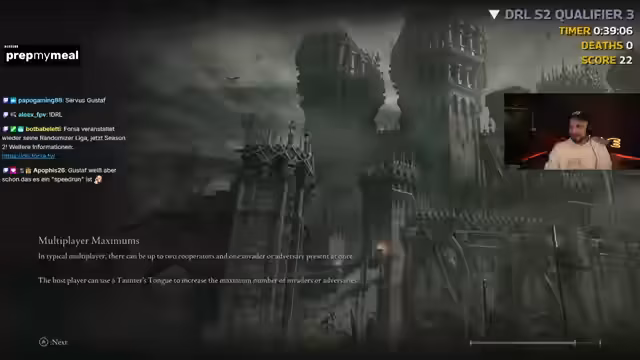 05:33:00Der Stream nähert sich dem Ende, und der Streamer gibt eine Übersicht über seine aktuelle Zielerreichung. Mit einer Zeit von 1 Stunde und 35 Minute scheint die Zielleistung von 70 erreichbar. Es werden letzte Entscheidungen getroffen, ob bestimmte Dungeons oder Bosse noch aufgesucht werden, um Schlüssel oder Beute zu sammeln. Eine technische Panne, durch die der Charakter durch die Map fiel, wird gemeldet, aber als Fehler erkannt. Der Streamer ist dennoch zufrieden mit dem Verlauf und erreicht am Ende eine Zeit von 74, was er als guten Erfolg für diesen Versuch bezeichnet, auch wenn er weiß, dass andere Spieler schnellere Zeiten erzielen.