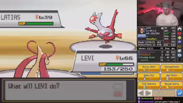 00:10:52Der Fokus liegt auf Arena 7, die beim letzten Versuch scheiterte. Es wird versucht, den Standort von Mahagoni Town zu bestimmen und sich dorthin zu begeben. Vor dem Betreten der Arena werden Items abgeholt und das Team geheilt. Der Streamer erinnert sich daran, dass dies die letzte Arena war, die mit dem besten Pokémon erreicht, aber nicht geschafft wurde. Es wird überlegt, ob HM-Sklaven mitgenommen werden sollen oder nicht. Die ersten Kämpfe in der Arena beginnen, wobei das Moveset des Pokémon und die Stats diskutiert werden. Trotz guter Stats wird das Moveset als traurig bezeichnet. Ein Kampf gegen ein vergiftendes Pokémon wird thematisiert, wobei genügend Heilung vorhanden ist. Der Streamer äußert sich abfällig über Nutella und zieht Butter vor. Es folgen weitere Kämpfe, bei denen Powder Snow eingesetzt wird. Der Schaden, den Volt Tackle verursacht, wird als gering empfunden. Es wird überlegt, wann die Special Attack genutzt werden soll.