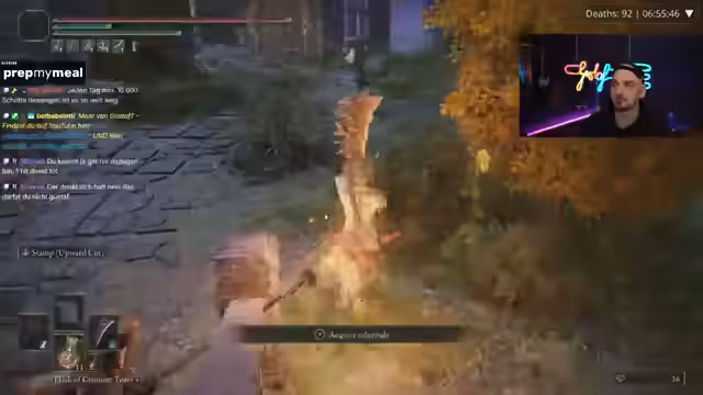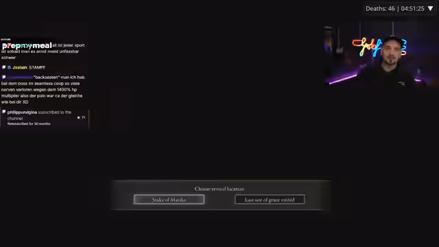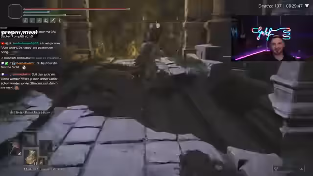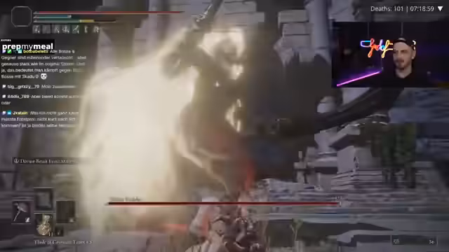 06:51:09Nach dem erfolgreichen Kampf gegen Radahn kündigt der Streamer einen letzten, symbolischen Versuch an. Die physische und mentale Erschöpfung ist offensichtlich, der Kopf dröhnt und die Konzentration lässt stark nach. Trotzdem oder gerade deshalb will er den letzten Versuch beenden, um den Run abzuschließen und das Gefühl des Erfolgs zu komplettieren.