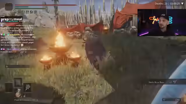 05:02:18Trotz zahlreicher Tode und einer langen Kampfdauer wird der Lernprozess betont. Der Streamer analysiert kontinuierlich seine Fehler und arbeitet daran, die Attacken des Bosses besser zu lesen. Er reflektiert über seine eigenen Bewegungen, sein Timing und den Umgang mit der knappen Ausdauer. Die wiederholten Versuche dienen dazu, Erfahrung zu sammeln, auch wenn Fortschritte langsam und unbeständig erscheinen.