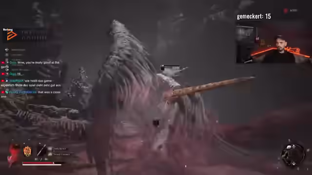 01:00:10Ein Bosskampf wird als unfair und unübersichtlich kritisiert, da die Angriffe schwer vorherzusehen sind. Der Streamer wechselt die Strategie und versucht, mit Feuer mehr Schaden zu verursachen. Die letzte Phase des Bosskampfes wird als besonders schwierig empfunden. Es wird festgestellt, dass die Haltung des Bosses nicht gebrochen werden kann und das Parieren schwierig ist, da die Angriffe oft nicht treffen. Der Streamer bemängelt die Dunkelheit in bestimmten Bereichen des Spiels und zögert, die Helligkeit dauerhaft zu erhöhen. Trotz Schwierigkeiten wird der Bosskampf schließlich gewonnen. Der Streamer äußert sich erleichtert über den Sieg und erkundet die Umgebung, um den Charakter zu verbessern. Verschiedene Attribute wie Burn Build Up und Tampering werden optimiert. Der Streamer sucht nach einem Händler für Bambus-Materialien und stellt fest, dass die Gegner stärker geworden sind. Trotzdem lohnen sich die Kämpfe, da sie Level-Ups bringen. Das Spiel wird als geil bezeichnet, aber der Streamer kann sich nicht vorstellen, es ohne Guide zu spielen.