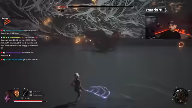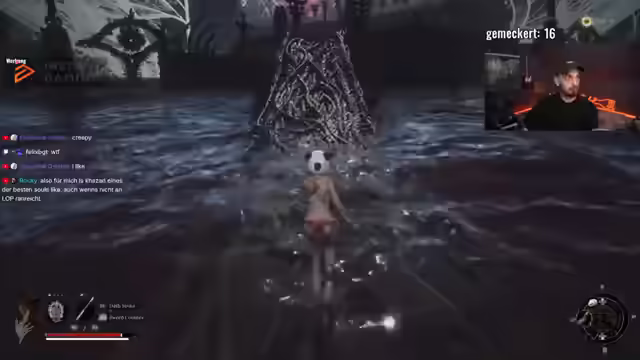 04:38:53Der Spieler äußert starke Frustration über eine besonders schwierige Stelle im Spiel, die seinen Verstand zu verlieren droht. Trotz des Ärgers lobt er das nicht-lineare Leveldesign im Vergleich zu linearen Spielen. Durch das Besiegen eines Dämons gelingt ein Fortschritt, der mit dem Abbau von Wahnsinn einhergeht, was positiv aufgenommen wird. Der Spieler findet einen Gegenstand, der die Waffe verbessern könnte, benötigt dafür aber noch weitere. Es wird eine Diskussion über den Wahnsinn im Spiel geführt, und der Spieler verteidigt seine Entscheidungen gegenüber Kommentaren im Chat. Es folgt die Erkenntnis, dass ein bestimmter Weg eingeschlagen werden muss, um voranzukommen, was zu einem Gefühl des Fortschritts führt. Der Spieler betont, dass das Vorankommen wichtiger ist als ein perfekter Spieldurchgang und bedankt sich für die Unterstützung im Chat.