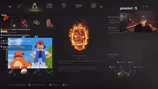 01:57:11Der Streamer verbessert seine Waffe auf das maximale Level und erhält einen Bonus von +5 Magie. Er diskutiert die Möglichkeit eines Resets, um seine Ausdauer zu erhöhen, aber entscheidet sich dagegen. Stattdessen konzentriert er sich darauf, mehr Talismane zu sammeln, um seine Fähigkeiten weiter zu stärken. Er erhält die Möglichkeit, drei Talismane aus der gleichen Kategorie anzulegen, was ihn deutlich stärker machen soll.