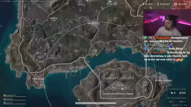 02:41:28Gemeinsam mit einem Freund startet der Streamer eine Runde PUBG in einem Duo-Modus. Sie entscheiden sich für eine ruhigere Startposition, um sich an das Spiel zu gewöhnen und mit den Einstellungen zu experimentieren. Nach der Landung in einem Haus mit Bots beginnt die Suche nach Ausrüstung. Das Gameplay wird durch Kommunikation über die Ausrüstung, Taktiken und die Umgebung geprägt, um als Team zu überleben.