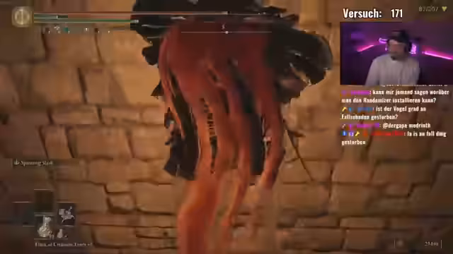 01:17:00Nach einem hitzigen und gefährlichen Kampf, in dem der Streamer Glück hatte und nicht von anderen Gegnern gestört wurde, besiegt er Maliketh. Gemeinsam mit seinem Partner erhalten sie den Schlüssel für die nächste Region, das Verließ von Miquella. Der Streamer ist erleichtert und freut sich auf den weiteren Verlauf des gemeinsamen Randomizer-Runs und die bevorstehenden Herausforderungen.