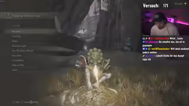 00:56:15Es wird die Angst vor dem Boss P.K. (wahrscheinlich Kürzel für Peacekeeper) geäußert und die Frage aufgeworfen, gegen welche Schadensart dieser schwach ist. Der Chat wird um Informationen gebeten, wobei vermutet wird, dass P.K. schwach gegen Stichschaden sein könnte. Es wird festgestellt, dass Holy-Schaden effektiv ist, aber keine andere Wahl besteht, als die vorhandene Waffe zu benutzen. Rot-Effekt wird als weitere Option erwähnt, da alle Untoten gerottet werden können. Es wird die Ash of War, Lightning Ram, gefunden. Abschließend wird festgestellt, dass P.K. stark gegen Slash und Pierce ist und nicht schwach gegen andere Schadensarten.