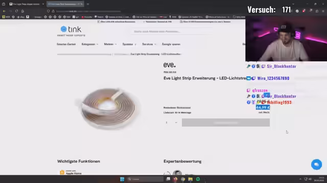00:08:01Es wird über die Schwierigkeit diskutiert, eine Erweiterung für einen Eve Lightstream zu bekommen, da diese auf Amazon nicht verfügbar ist. Der Streamer hat das Basis-Kit für 29,99 Euro erworben, was als guter Preis angesehen wird. Die Erweiterung hingegen ist schwer zu finden und kostet etwa 40 Euro, ist aber anscheinend nicht mehr erhältlich. Es wird überlegt, ob man die vorhandenen Teile zusammenlöten oder das komplette Kit nutzen soll. Die Idee, die beiden Kits zusammenzuschließen und als eine Lichteinheit in der Elgato-App zu verbinden, erscheint als die logischste Lösung. Der Chat stimmt zu, dass dies die beste Vorgehensweise ist, um das Problem zu lösen, ohne zusätzlichen Stress zu verursachen.