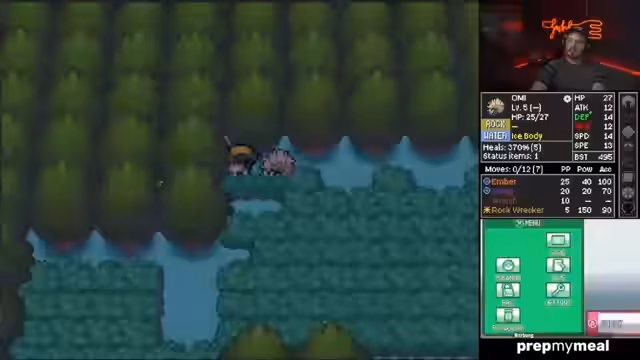 04:48:02Der Streamer wägt die Pokémon-Auswahl für den Kaizo Ironmon-Run ab. Dabei werden die Einschränkungen der Challenge, wie ein limitierter Base-Stat-Total von unter 600, als problemlos erachtet, da dies verhindert, dass zu starke Pokémon wie Mewtwo eingefangen werden können. Es zeigt sich aber auch die Zufälligkeit des Spiels, da das vierte Pokémon mit nur 10% Wahrscheinlichkeit gefunden wird, was zu Frustration führt.