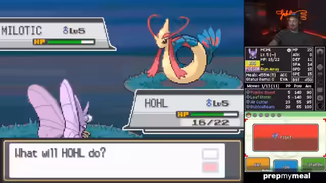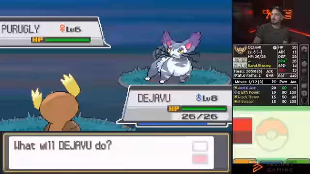 01:47:04Der Streamer erklärt die Regeln von Kaiser Ironmon, nach denen man trotz einer schlechten Anfangs-Wahl nicht neu starten darf, sondern es bis zum gewünschten Pokémon durchspielen muss. Nachdem man ein Pokémon ausgewählt hat, ist dieses für den gesamten Lauf bindend. Der Streamer kämpft mit einem Level 5 Pokémon gegen ein Level 8 Pokémon, was einen erheblichen Nachteil bedeutet. Die Anfangsphase ist geprägt von Pech und hohen Verlusten, da das Pokémon nur sehr schwache Attacken wie "Gangshot" mit geringer Trefferwahrscheinlichkeit und nur 5 PP zur Verfügung hat, was die Kämpfe extrem schwierig und zufällig macht. Das Ziel ist zunächst, überhaupt lebendig aus dem Gebiet zu kommen und ein brauchbares Pokémon zu fangen.