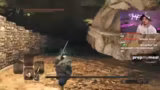 01:56:17Nach dem Wechsel zu Dark Souls 2 beginnt das Training mit der Suche nach wichtigen Ressourcen. Das Ziel ist es, Schmiedesteine zu finden, um die Waffen aufzuwerten. Da der Streamer nicht genug Steine hat, erkundet er die Umgebung, was zu ersten Kämpfen mit unangenehmen Gegnern führt, die bereits eine negative Einstellung zum Spiel hervorrufen.