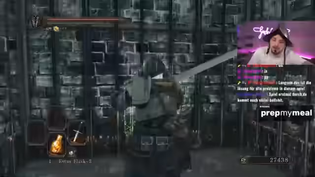 02:55:38Der Streamer befindet sich in einem besonders schlimmen Gebiet und kämpft gegen einen Boss, den er als 'nervig' beschreibt. Er nutzt Hilfsmittel wie 'Green Blossom', um seine Ausdauer zu regenerieren, und stößt dabei auf einen Händler, der den 'Chloranthy Ring' verkauft. Nach dem erfolgreichen Bosskampf, bei dem er 'No-Hit' blieb, wird an die Anfänge von Dark Souls 2 erinnert, wo er als Casual ebenfalls viel gegen die Bosse und die Wege kämpfen musste. Er findet eine Leiter und erkundet weiter das Level, obwohl er den Weg nicht sicher finden kann.