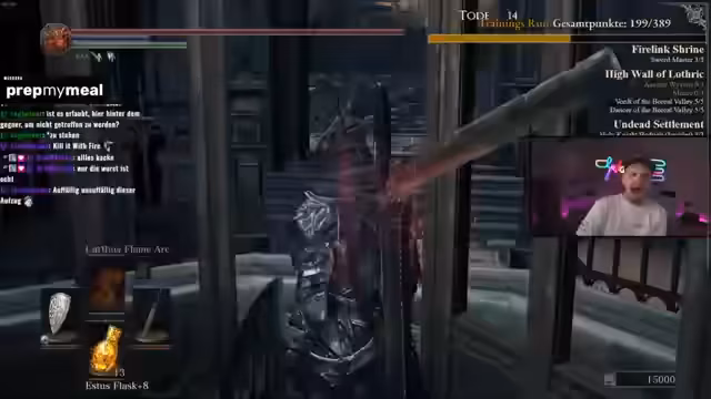 03:45:30Der Streamer äußert seine Frustration über die zunehmende Schwierigkeit von Dark Souls 3, insbesondere wenn er auf stärkere Gegner in späteren Spielbereichen trifft. Er kritisiert die Designentscheidungen, normale Gegner im Vergleich zu Bosse viel stärker zu machen. Er kämpft gegen mehrere Gegner gleichzeitig und erlebt mehrere Tode, was ihn mental belastet und ihn zum Nachdenken über den No-Death-Run bringt.