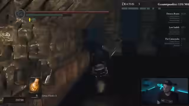 02:18:54Der Spieler erinnert sich an eine unangenehme Begegnung mit Rabenfrauen und stellt fest, dass diese sehr viel Leben haben und wenig Schaden verursachen. Unsichtbare Gegner werden entdeckt, was die Situation zusätzlich erschwert. Der Chat weist darauf hin, dass Havel in solchen Situationen hilfreich sein kann, aber bei Angriffen von zwei Gegnern gleichzeitig keine Rettung bietet. Eine Leiter wird gefunden, und der Spieler überlegt, ob dies der richtige Weg ist. Nach einem Beinahe-Tod wird eine unsichtbare Plattform entdeckt, und der Chat gibt den Hinweis, dass sich in dem großen Raum ein Hebel befindet. Nach Aktivierung des Hebels stellt sich heraus, dass dies den Weg komplizierter macht und der Streamer keine Abkürzungen nehmen kann, da dies zur Disqualifikation führen würde. Es wird ein Bernekenite gesucht, bevor es gegen Crossbreed Priscilla geht. Der Spieler findet den Gegner und besiegt ihn. Anschließend wird der Prüster erledigt, ohne dessen Tail zu benötigen. Der Streamer ist kurzzeitig überfordert, besiegt den Gegner aber schließlich. Es wird vermutet, dass man eine Sense erhält, wenn man den Schwanz abschneidet, aber dies wird verneint. Danach wird versucht, Gwindolin zu töten, aber der Weg dorthin ist unklar.