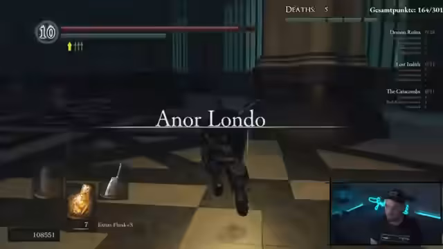 00:08:47Der Streamer erkundet Anor Londo, wobei der Fokus auf der Suche nach einem Schmied und Titanite Demon liegt. Es werden verschiedene Gegner getroffen, darunter hässliche Typen, an die sich der Streamer kaum erinnert. Es gab eine Diskussion über den Umgang mit Bogenschützen und die Schwierigkeit, in dunklen Bereichen zu navigieren. Der Streamer findet neue Ausrüstung, einschließlich Havels Rüstung, und experimentiert mit verschiedenen Builds, um unbesiegbar zu werden. Es wird versucht, Abkürzungen zu finden, um den Schmied zu erreichen und die Waffe aufzuwerten. Der Schmied wird erreicht und die Waffe wird auf +9 und dann +10 aufgewertet. Der Streamer kauft Large Titanites und es wird überlegt, ob weitere Abkürzungen aufgesucht werden sollen. Der Streamer entscheidet sich, einen Titanite Demon zu suchen, um die Waffe weiter zu verbessern, und findet ihn an der Stelle, wo ein Skip gemacht wurde. Der Titanite Demon wird besiegt und der Streamer kann die Waffe weiter aufwerten.