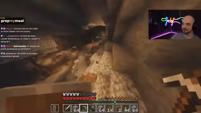 04:38:04Während die Exploration voranschreitet, gerät das Team in immer größere Gefahr. Skelette und Creeper lauern in den dunklen Gängen und verursachen trotz voller Eisenrüstung erheblichen Schaden. Der Streamer beschreibt die intensiven Kämpfe und den damit verbundenen Adrenalinschub. Er wird dabei mehrmals angegriffen und verliert durch einen unglücklichen Treffer sogar das Leben, was zu einem kurzzeitigen Rückgang der Moral führt, den er aber schnell wieder überwindet.