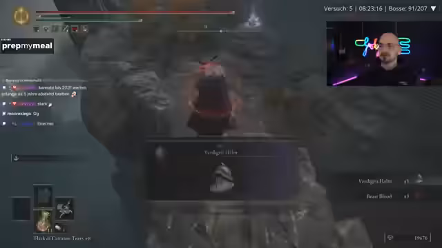 00:40:40Der Streamer kehrt zum Spiel Elden Ring zurück. Er berichtet, dass er bereits 92 von 218 Bossen besiegt hat und bei den 'Valiant Gargoyles' angekommen ist. Er diskutiert über Schwierigkeiten im Spiel, die je nach Waffenwahl variieren können. Eine Waffenanpassung mit Schadensüberladungen wird als sehr effektiv beschrieben. Er erwähnt das Fehlen von Schlüsseln für bestimmte Bereiche, wie die Mountaintops, und den damit verbundenen Frustration.
