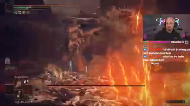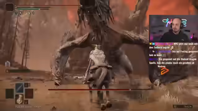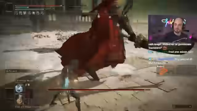 03:15:22Die verbleibenden Bosse vor dem Ende des DLCs sind Malenia und Radahn. Der Streamer äußert, dass er Malenia für einfacher hält als Radahn, den er aufgrund seiner Geschwindigkeit und unübersichtlichen Attacken als sehr herausfordernd ansieht. Es werden verschiedene Strategien für Radahn getestet, darunter der Einsatz von Frost- und Feuerzaubern, jedoch ohne Erfolg. Der Schaden wird als unzureichend empfunden.