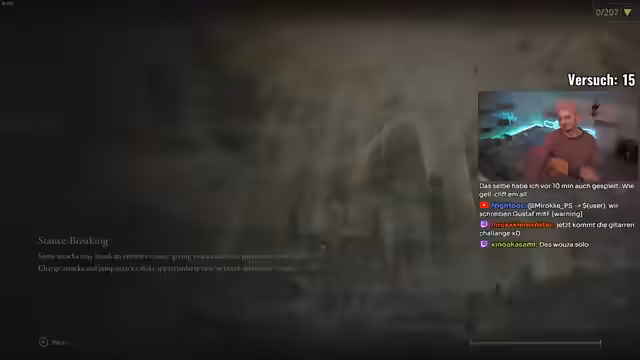 04:26:00Während des Streams werden mögliche, besonders schwere Boss-Kombinationen in der zukünftigen Challenge diskutiert. Die Konstellation von Radars Phase 2 zusammen mit Gaius wird als nahezu unüberwindbar angesehen. Gleichzeitig klagt der Streamer über Pech im aktuellen Spielverlauf, wobei er unfaire Hitboxes und umständliche Mechanics wie unkontrollierbares Runterfliegen als frustrierend beschreibt, was zu unnötigen Toden führt.