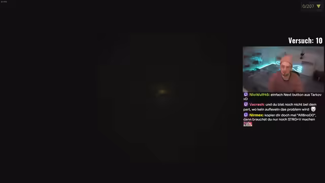 02:53:19Der Streamer schildert mentale Erschöpfung und frustrierte Reaktionen auf das laufende Spiel. Es kommt zu technischen Problemen, wie dem Absturz der Waffe, der den Kampf unmöglich macht. Die Kombination aus der Schwierigkeit der Gegner, mangelndem Schaden und eigenen Fehlern führt zu einem Zusammenbruch der Konzentration und Frustration. Dies manifestiert sich in Aussagen wie 'alles läuft den Bach herunter' und 'unfair'.
