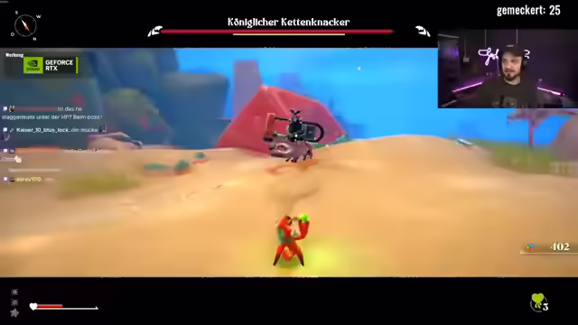 00:45:13Der Streamer trifft auf einen Miniboss und stellt fest, dass das Spiel hart ist und man die Gegner lernen muss. Er stirbt mehrmals und bittet den Chat, nicht zu viel zu spoilern. Er besiegt den Miniboss schließlich und findet einen Seestern, der ihm plus drei Leben gibt. Er kündigt an, dass er jetzt LVM-Ansch-Partner hat und dass zwischendurch immer wieder Partner eingeblendet werden. Er erwähnt auch, dass Aorus Gigabyte Nvidia gemeinsame Partner sind und er einen Laptop von Oros bekommen hat, den er später vorstellen wird. Er erklärt, dass LVM jede Stunde einen Code einblenden wird, mit dem man auf der LVM-Seite seine Gewinnchancen erhöhen kann. Er findet zufällig einen Shady, der ihn um Hilfe bittet. Er besiegt Grobianen und rettet einen Panzer, der ihm von einem Landjungen überlassen wird. Er kann seine Flaschen aufladen und muss bei aufgeladenen Angriffen aufpassen.
