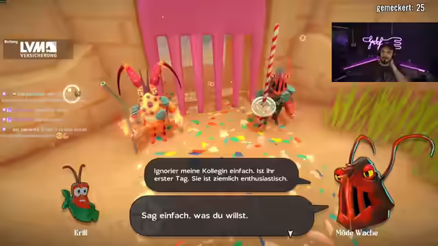 gustafgabel taucht in Another Crab's Treasure ein, ein Spiel mit Gesellschaftskritik und Souls-like-Elementen. Er erkundet die Welt, sammelt Mikroplastik, kämpft gegen Minibosse und entdeckt neue Fertigkeiten. Partnerschaften mit LVM, Aorus Gigabyte Nvidia werden vorgestellt. Der Streamer analysiert Bosskampf-Taktiken, findet neue Ausrüstung und stellt Gameplay-Verbesserungen fest.