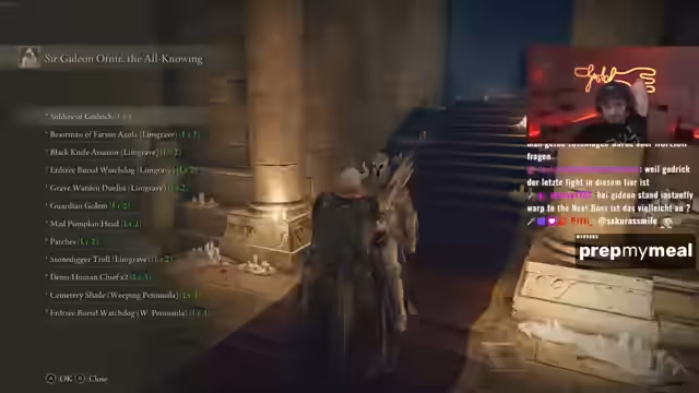 04:59:16Der Streamer erklärt seine Vorgehensweise im Spiel, um zum Moonlight-Altar zu gelangen. Nachdem er Leonia und Altus abgeschlossen hat, macht er Keylet und dann den kompletten Untergrund, bis auf Moog. Anschließend erledigt er alle Gebiete in Siofra, Deeproot Dev und Ainsel, bevor er als Letztes den Moonlight-Altar aufsucht. Diese Abfolge scheint ihm bewusst zu sein, da er erläutert, dass es keine andere Möglichkeit gibt, an diese Stelle zu gelangen, als über den Lift vom Untergrund.