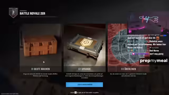 02:03:02Im Endspiel der Runde sind mehrere Teams um einen Shop herum versammelt, was zu chaotischen Kämpfen führt. Der Streamer und Georg versuchen, sich gegenseitig zu unterstützen und zu retten, werden jedoch von mehreren Gegnern gleichzeitig angegriffen. Der Streamer äußert die Frustration über die aktuelle Spielumgebung und erwägt, das Match zu restarten oder in andere Spielmodi wie Trios zu wechseln, um die Spielerfahrung zu verbessern.