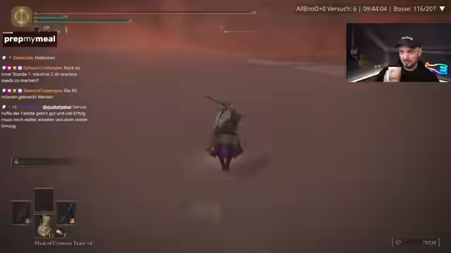 00:06:57Gustav begrüßt die Zuschauer und stellt den aktuellen Stream als einen AllBnoD+0 Run vor. Das bedeutet, alle Bosse müssen besiegt werden, ohne zu sterben, ohne Waffenlevel und im Randomizer. Der Streamer zeigt eine beeindruckende Sammlung von bereits besiegten Bossen, wie dem Fire Great Katana und Poison Antipier, und erwähnt, dass er wegen eines Geburtstagstags nicht streamen konnte.