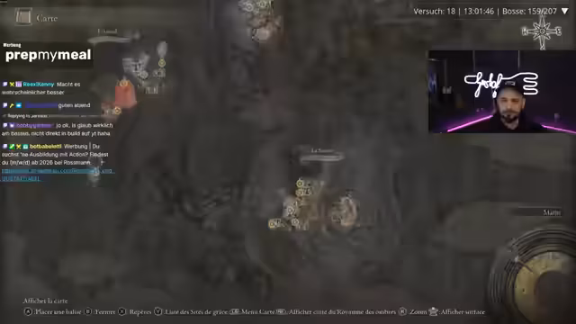 02:17:44Gustaf bereitet sich auf die finalen Bosse wie Loretta und Malenia vor, sammelt essentielle Items wie den Curse Mark of Death und plant die Quest-Abschnitte im DLC. Er erwähnt die Notwendigkeit, bestimmte Gebiete wie Farum Azula zu erkunden, und reflektiert über vergangene Kämpfe wie Radagon. Gegen Stream-Ende kündigt er Werbung an und gibt Viewern Tipps, wie sie diese via YouTube umgehen können.