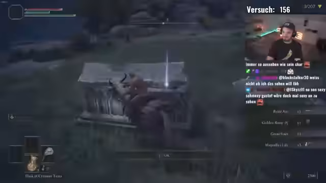 04:01:37Zu Beginn des Streams erforscht der Streamer gemeinsam mit dem Chat die genauen Bedingungen des laufenden Spiels. Es wird diskutiert, dass es sich um einen Same Seed handelt, was bedeutet, dass beide Spieler mit identischen Startbedingungen spielen. Er erwähnt spezifische Items im Seed, wie Rotten Greatsword und Crackblade, und stellt fest, dass einer der Bosse möglicherweise der Letzte in der Reihe ist. Ein beinahe-Verlust wird als schade empfunden, da ein lustiges Ableben im Spiel humorvoll gewesen wäre.