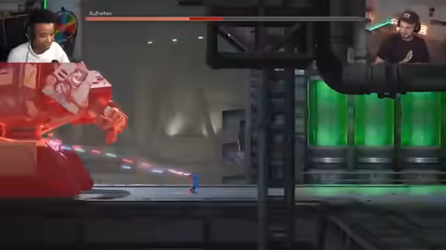 05:28:55Die Spieler navigieren durch ein anspruchsvolles, kreativ gestaltetes Level, das sie als das bisher beste bezeichnen. Sie benötigen ständige Koordination, um gemeinsam Hindernisse zu überwinden und Gegner zu bekämpfen, wobei sie sich gegenseitig unterstützen und anfeuern. Die Kommunikation ist zentral, um Positionen abzustimmen und Aktionen wie das gleichzeitige Aufschalten von Plattformen zu ermöglichen, die eine Zusammenarbeit erfordern.