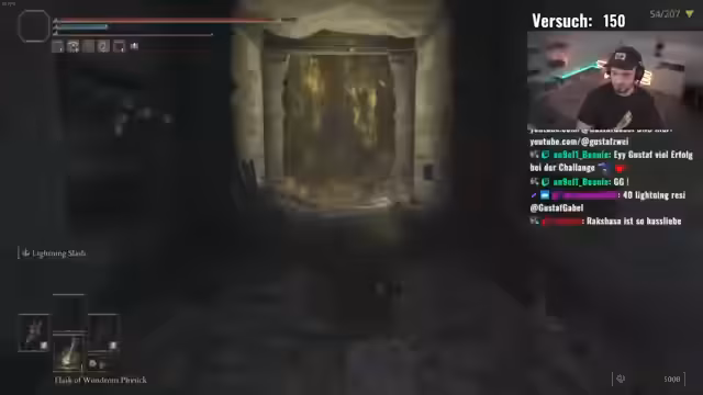 02:03:19Der Streamer reflektiert über seinen Fortschritt, merkt aber an, dass er bestimmte Items, wie die Golden Horns, bisher nicht eingesetzt hat, was er als Fehler betrachtet. Eine Debatte entsteht über den Nutzen von Runen und dem Einlösen von Erinnerungen. Der Weg zum Boss wird als 'nicht der angenehmste' beschrieben, was die bereits angespannte Stimmung weiter verstärkt. Ein Spieler äußert seine Bewunderung für die Leidenschaft des Streamers, Challenges durchzuziehen.