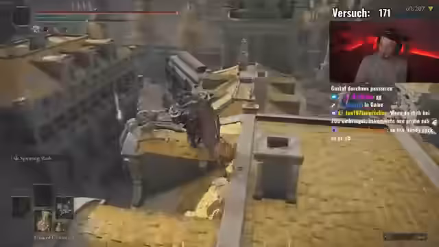 02:40:35Die Aufmerksamkeit kehrt zum Spiel zurück, wobei ein neuer Bosskampf auftritt, der als extrem schwierig beschrieben wird. Der Streamer stößt auf viele Hindernisse, darunter einen Gegner, der als immun gegen alle Angriffe wirkt, und zusätzlich auftauchende Bogenschützen. Dies führt zu einer sehr unangenehmen und frustrierenden Kampfsituation, bei der der Streamer kaum Schaden anrichten kann und die Spielumgebung selbst als problematisch empfunden wird. Er spekuliert, ob das Spiel, der Randomizer oder die Technik an den Schwierigkeiten schuld ist.